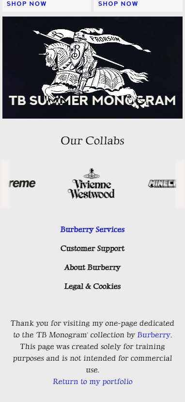 a one-page website dedicated to the "Thomas Burberry Monogram" collection by Burberry.