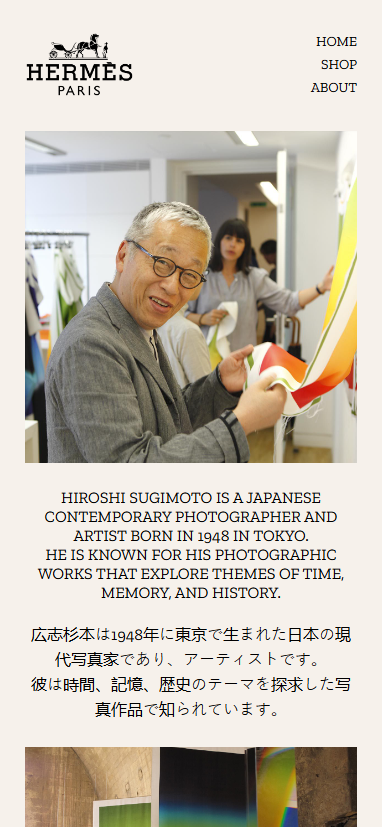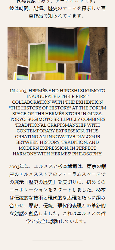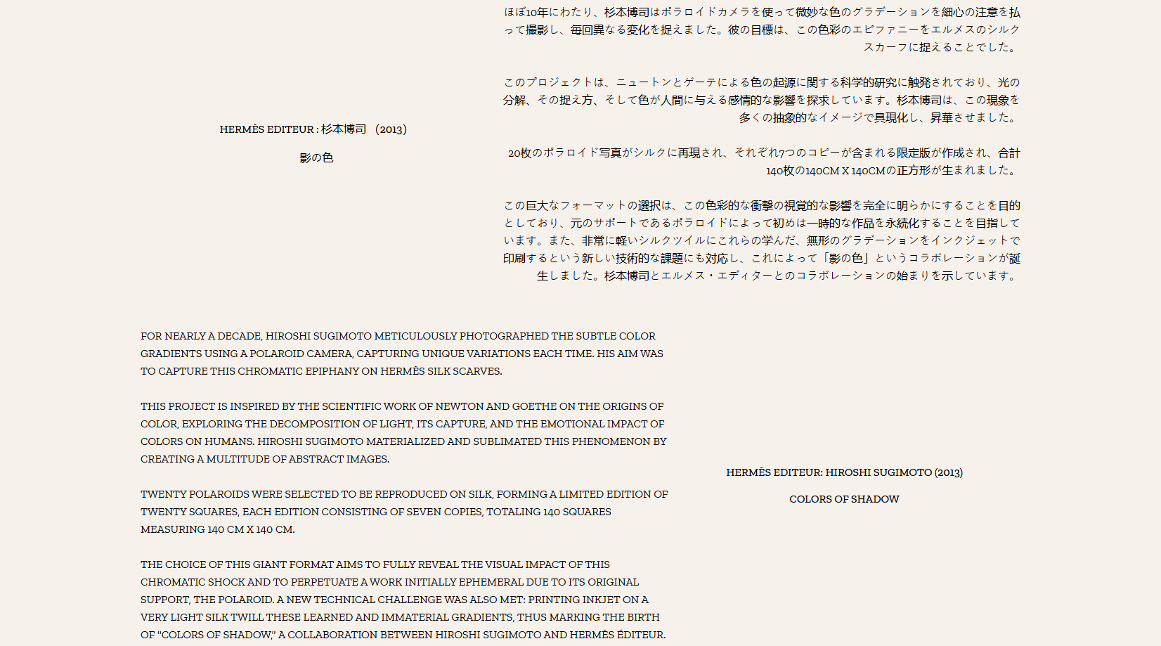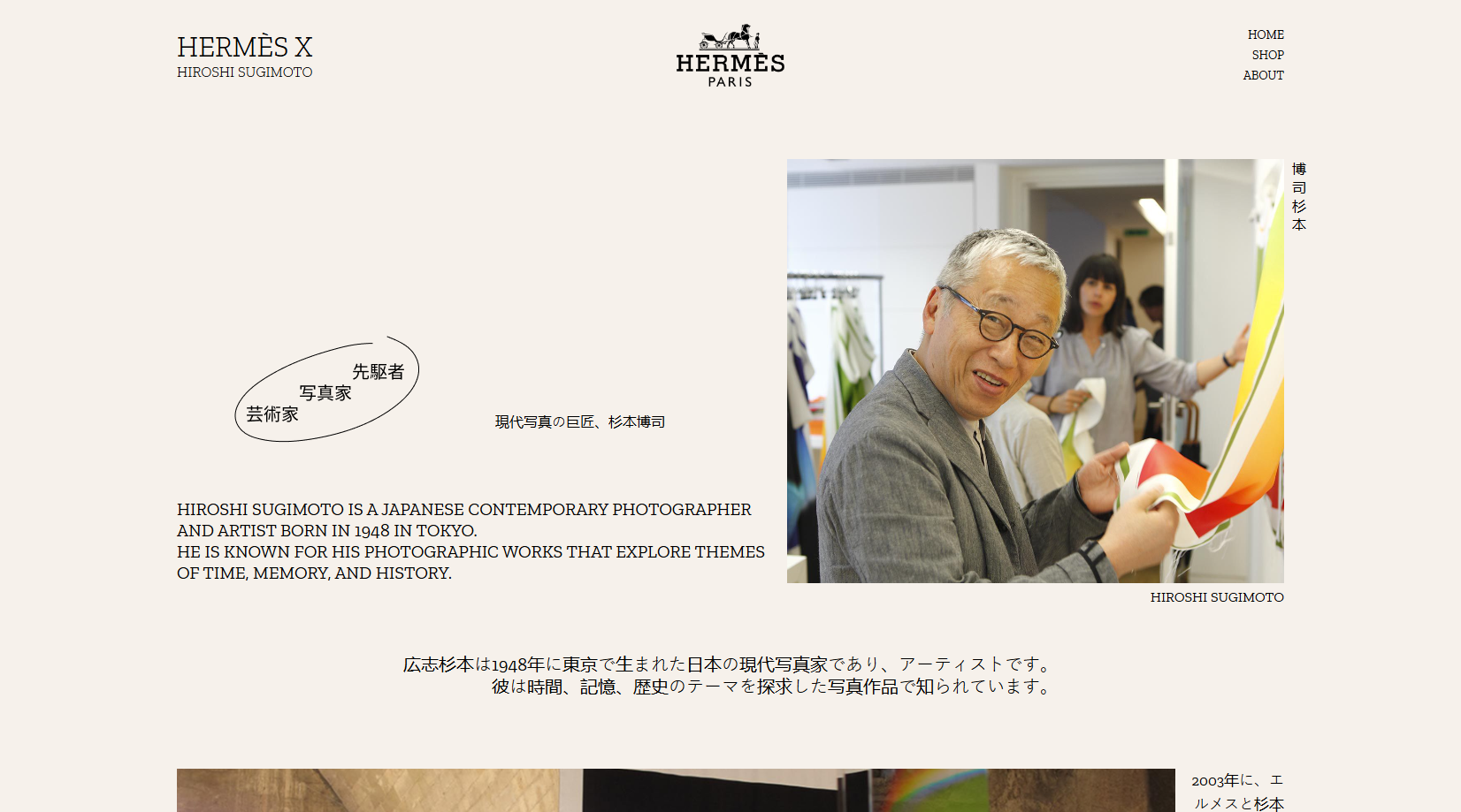a one-page website dedicated to the Hermès x Hiroshi Sugimoto collaboration.